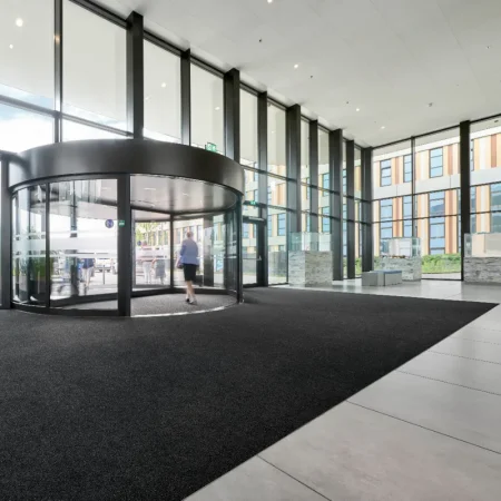 Disponibil sub formă de role, covorașe individuale, plăci modulare și covorașe pentru scări, Comform oferă o flexibilitate totală de montaj, adaptându-se perfect zonelor cu trafic intens din clădiri premium.
