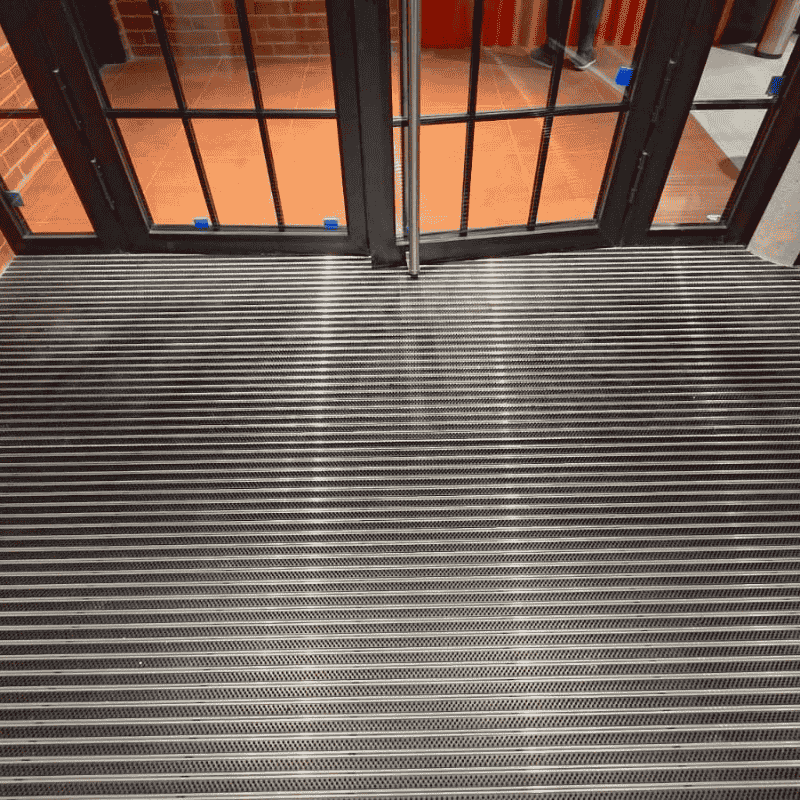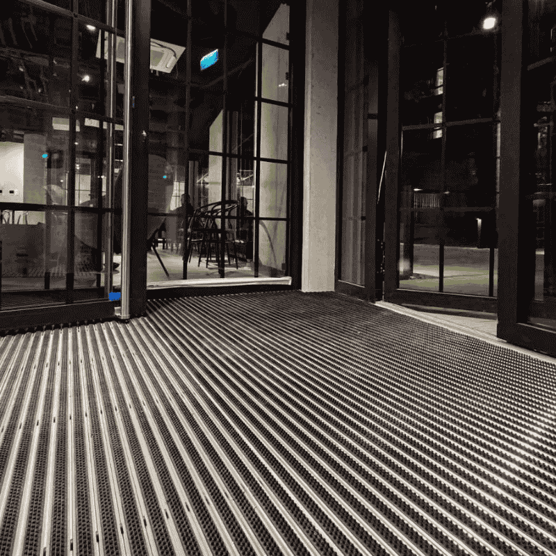 Prin utilizarea unor ștergătoare de picioare din aluminiu dedicate zonelor mari, experiența utilizatorilor este îmbunătățită încă de la primul pas.