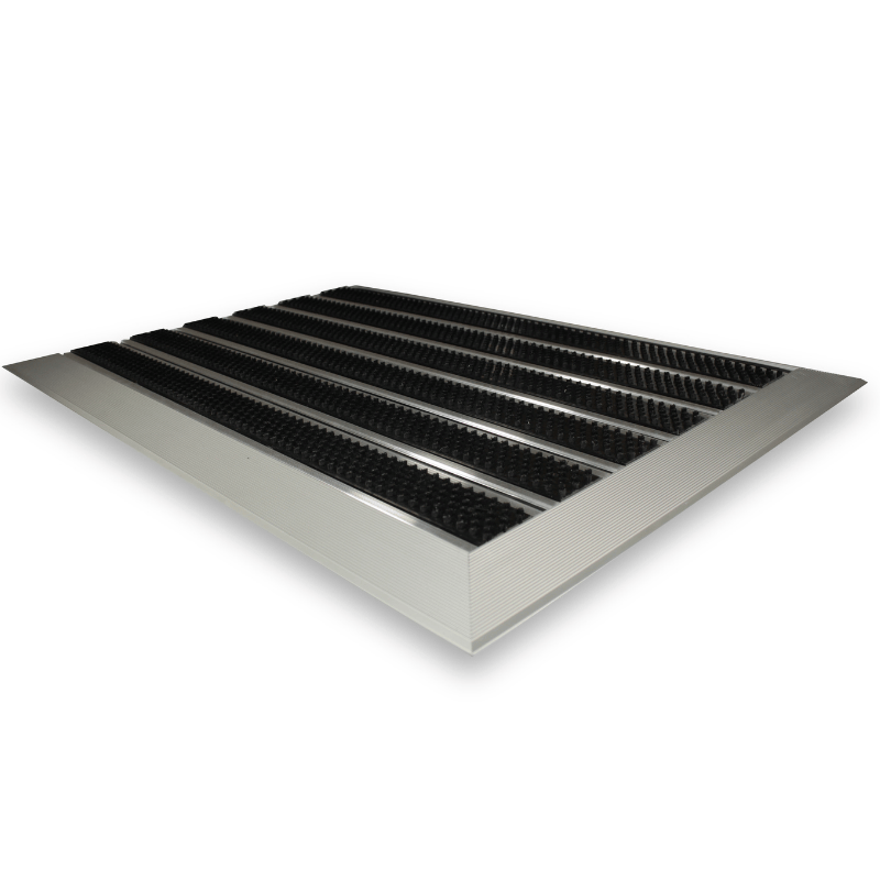 Aceste carpete din aluminiu utilizează inserții de tip perie, integrate într-un sistem modular robust, ideal pentru captarea noroiului, nisipului și a particulelor abrazive încă de la intrare.