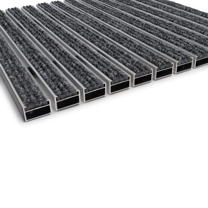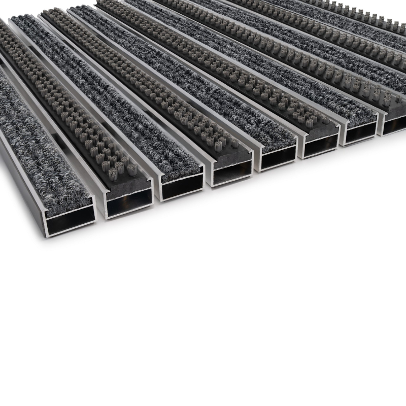 Ștergătoarele de picioare din aluminiu Clean System Strong sunt proiectate special pentru zonele unde solicitările mecanice depășesc standardele obișnuite. Datorită profilelor de aluminiu ranforsate de 2,5 mm, aceste carpete din aluminiu funcționează ca un adevărat sistem industrial de protecție a intrărilor, reținând eficient murdăria, nisipul și umezeala încă de la primul pas.