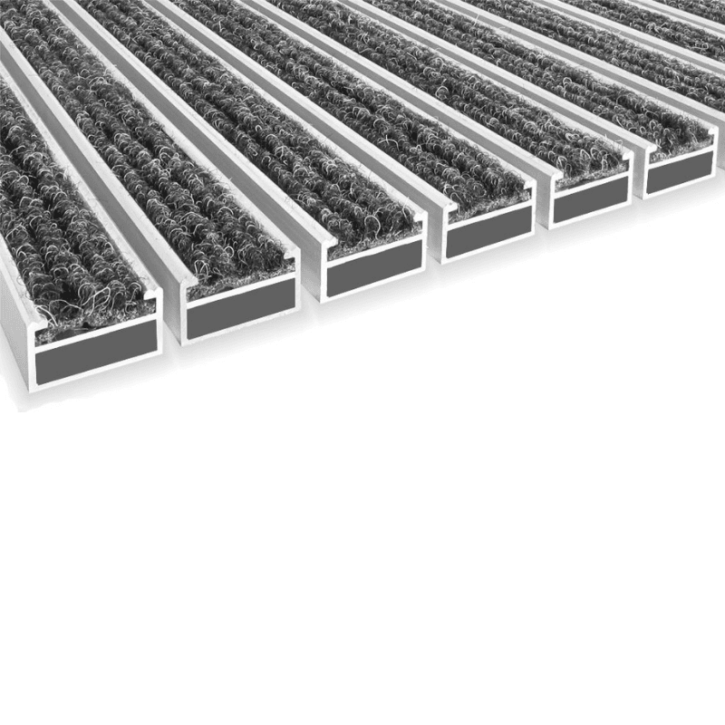 Îndepărtează murdăria grosieră (noroi, nisip, pietriș) cu ajutorul profilelor din aluminiu prevăzute cu inserții din cauciuc sau perii. Astfel, particulele abrazive nu mai ajung pe pardoselile interioare.